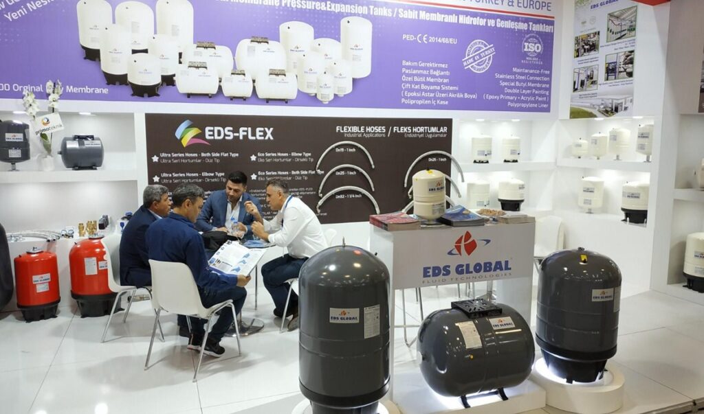 EDS GLOBAL her zaman olduğu gibi dünya genelindeki sektörün ana fuarlarına katılmaya devam etmektedir. Firmamız 2019 Kasım ayı içerisinde de bu fuarların içerisinde ve en önemlilerinden biri olan  İstanbul Sodex fuarına katılmıştır. Fuar süresince, üretim gamımızda yer alan Türkiye’nin en kaliteli hidrofor ve genleşme tankıları olan yeni nesil bakım gerektirmeyen sabit diyaframlı tanklarla birlikte, yine Türkiye’de profesyonel anlamda bir ilk olan EDS GLOBAL Su Arıtma Cihazları Depolama Tankları (RO tankları) nın tanıtımı yapılmıştır. Bu ürünlerimiz siz değerli iş ortaklarımızdan büyük ilgi görmüştür. İstanbul 2019 Sodex Fuarı süresince standımızı ziyaret eden bütün müşterilerimize teşekkür ederiz.